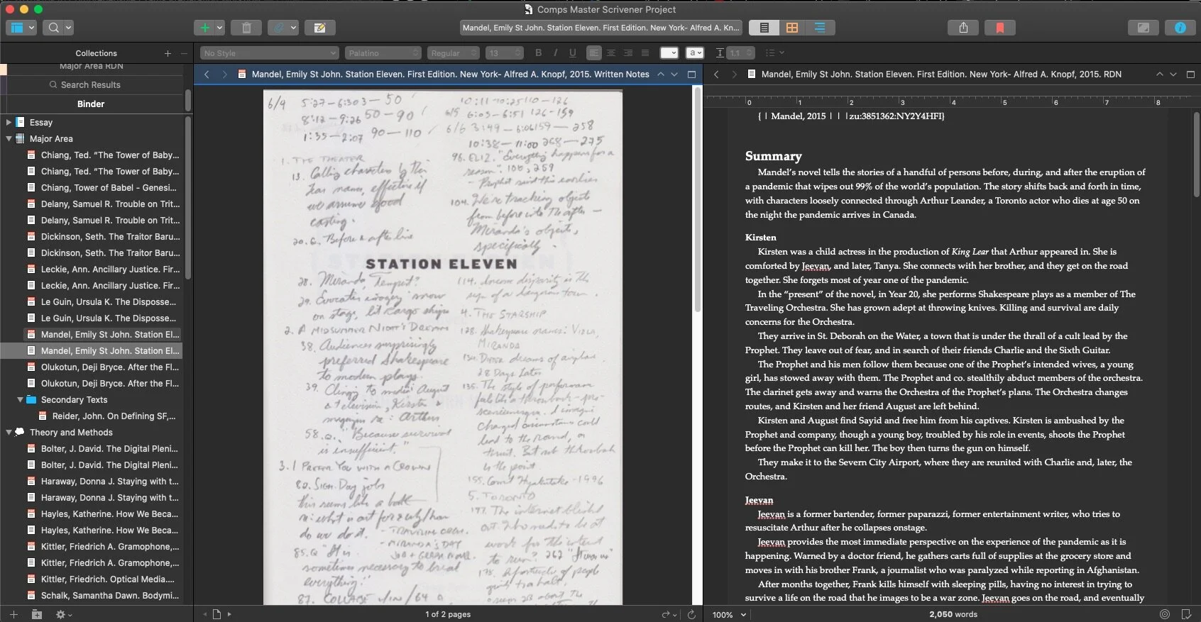 I gave Scrivener a test drive by using it for my seminar papers in the fall of 2019, and I’ve since used it for most of my writing projects. It creates a single space where I can put all my stuff pertaining to the exam, which means that when the time comes, hopefully, I’ll spend more time writing and less time rearranging, minimizing, and maximizing folders of notes.