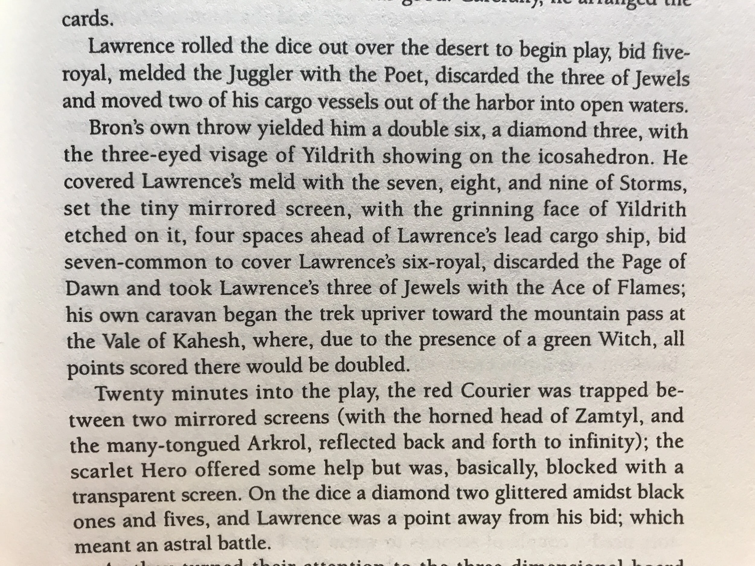 I’m reading Trouble on Triton, by Samuel R. Delany, for the first time and got a kick out of this passage, describing the game vlet: