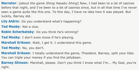 Meria Ferrari (writer) and Pamela Fryman (director), “Atlantic City,” How I Met Your Mother (CBS, November 13, 2006).