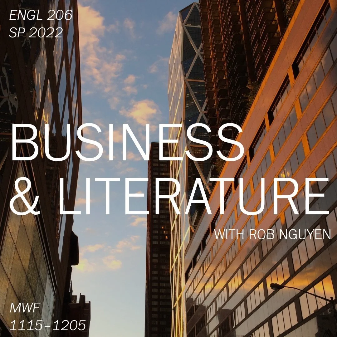 This course examines depictions of finance, sales, entrepreneurship, and global business. Works studied will include novels, such as Mateo Askaripour’s Black Buck and Ling Ma’s Severance, and TV shows and films like The Office and The Big Short. Our goals are to understand what these works tell us about business ethics; what they argue about the role of business in society; and how they mediate business concepts and cultures into compelling, accessible stories.